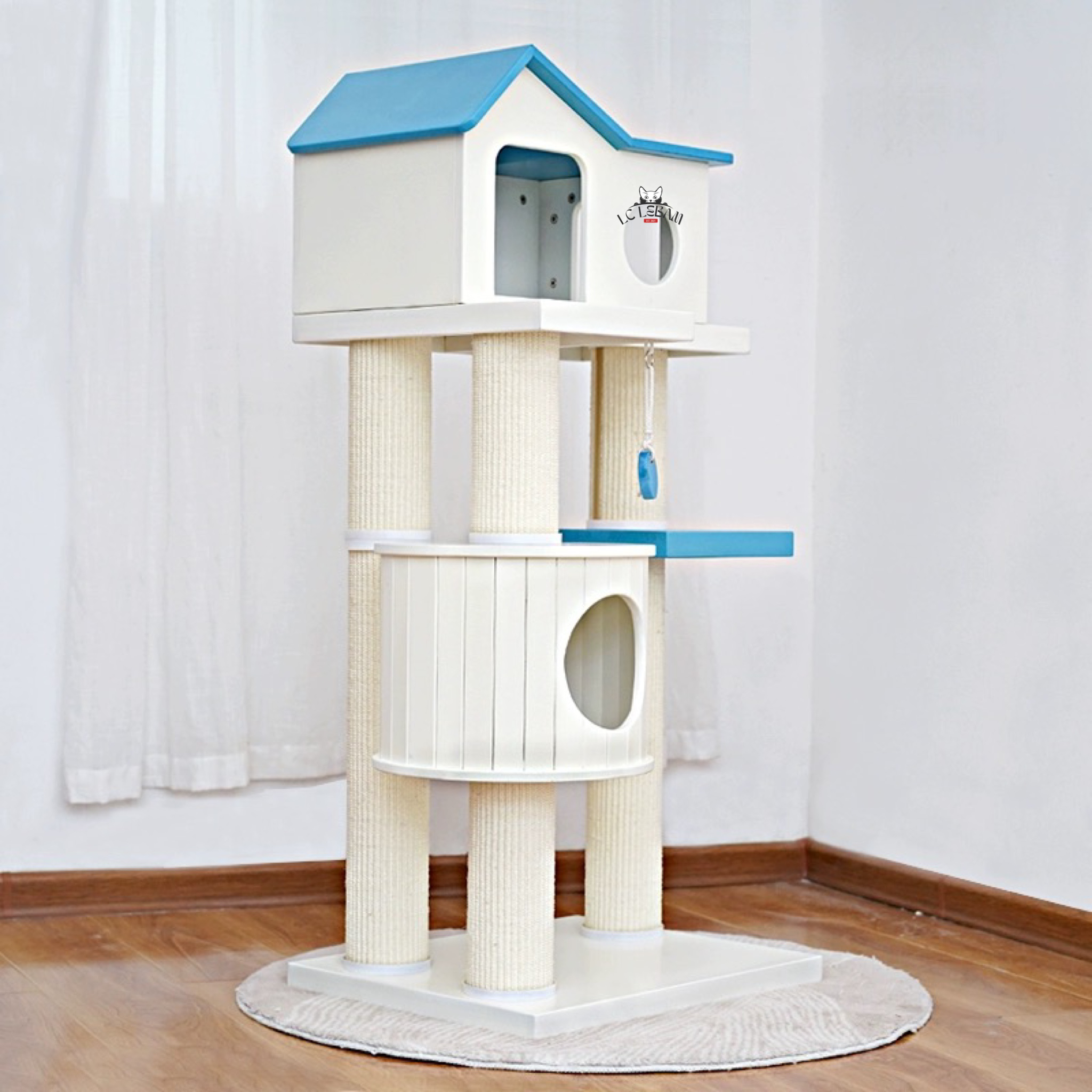 ➵ 實木松木多功能大型貓窩貓爬架𓃠 ➵ 精細打磨 光滑無毛刺 ➵ 優質羊羔絨棉墊 柔軟親膚 ➵ 延邊加高 離地防潮 穩固不晃 ❥ 尺寸: 60x50x130.5CM ✯採用進口新西蘭松木再上色 加粗劍麻布柱子 高硅紙筒支柱✯