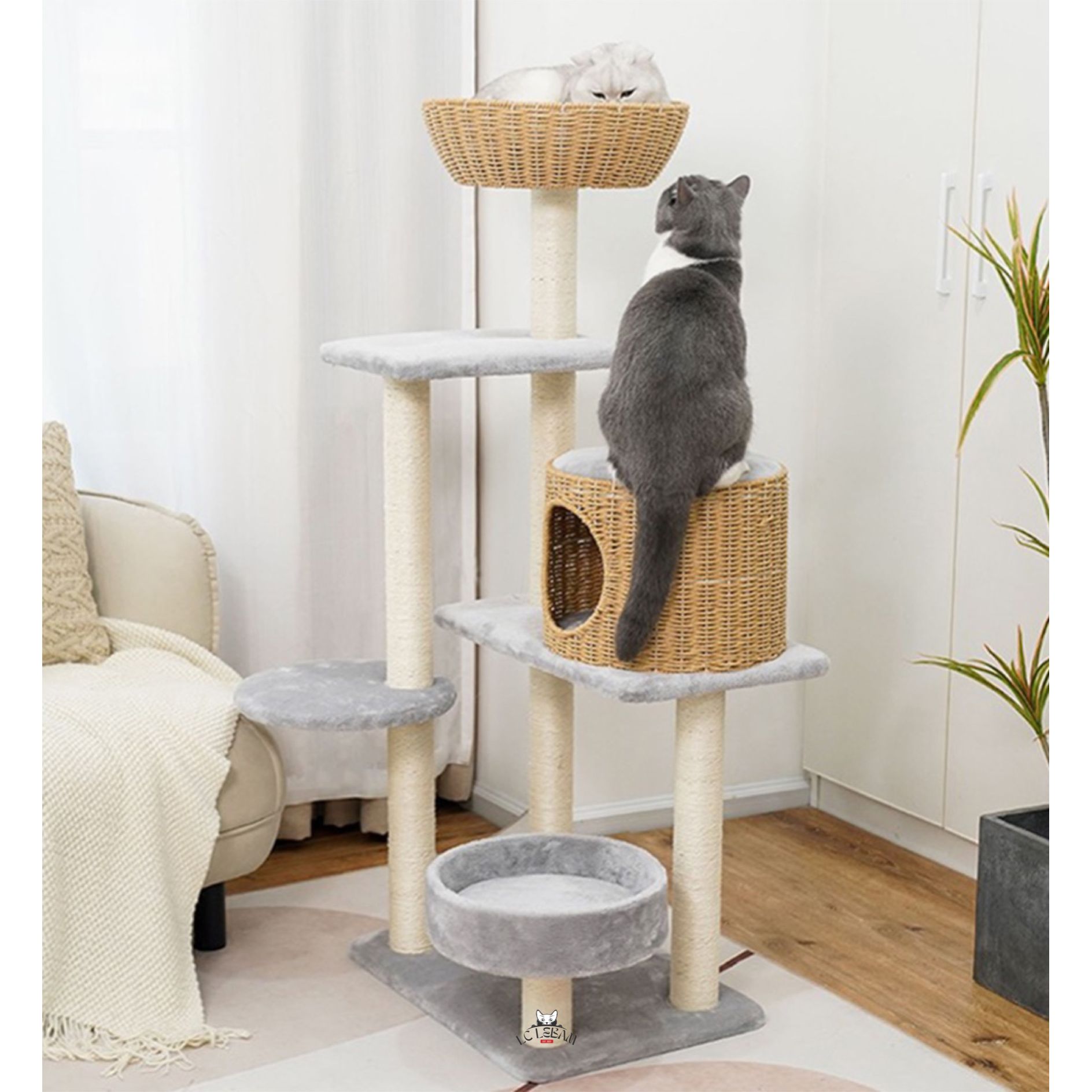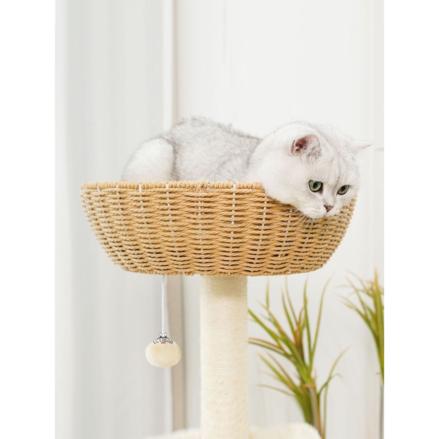 ➵ 拼色藤編簡約設計貓爬架𓃠 ➵ 品質麻繩緊密纏繞 ➵ 窩墊內有PP棉填充 ➵ 加寬加厚的底座 穩固支撐 ❥ 尺寸: 73x70x132CM