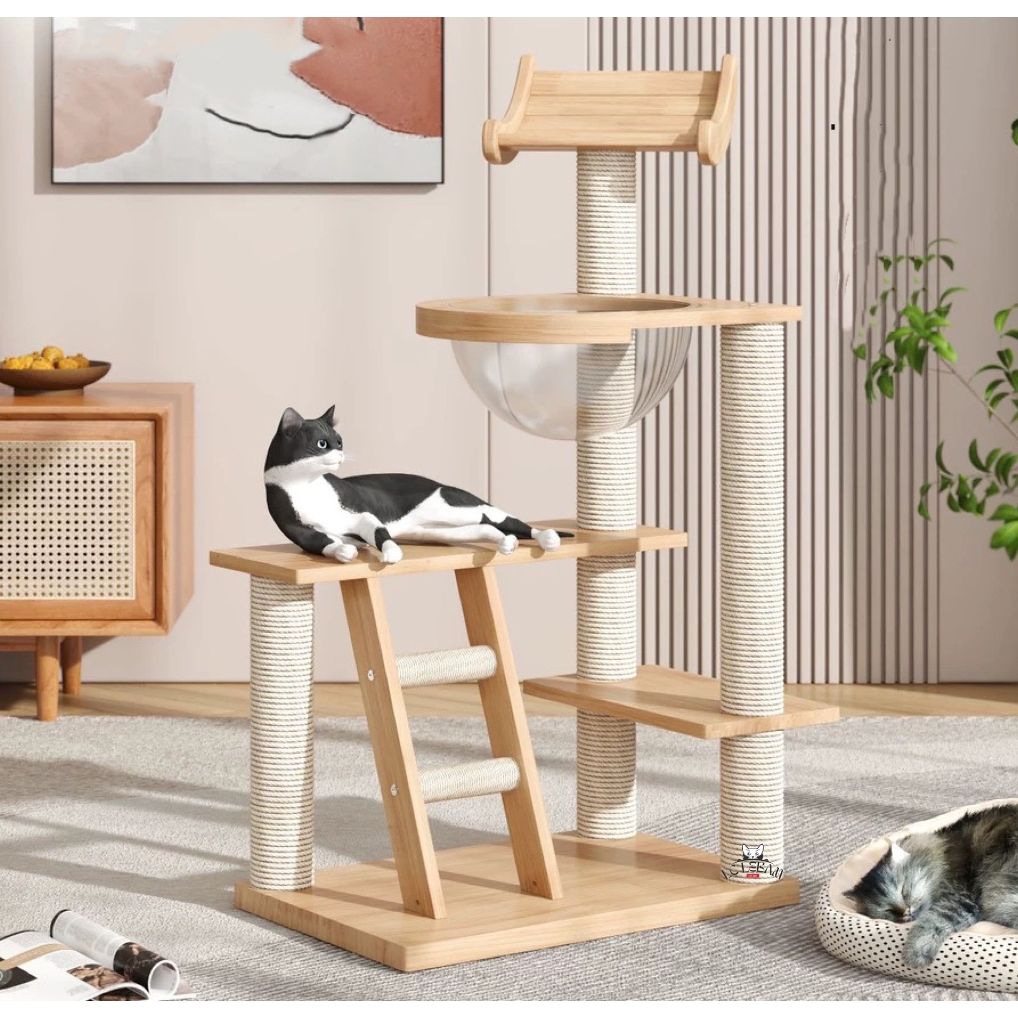 ➵ 進口松木躺椅系列貓爬架𓃠 ➵ 新西蘭進口松木 ➵ 實木打造 拒絕甲醛 ➵ 金字塔型 穩固不晃 ➵ 透潤太空艙 通透光滑 ➵ 立柱優質牛皮繩柱 ❥