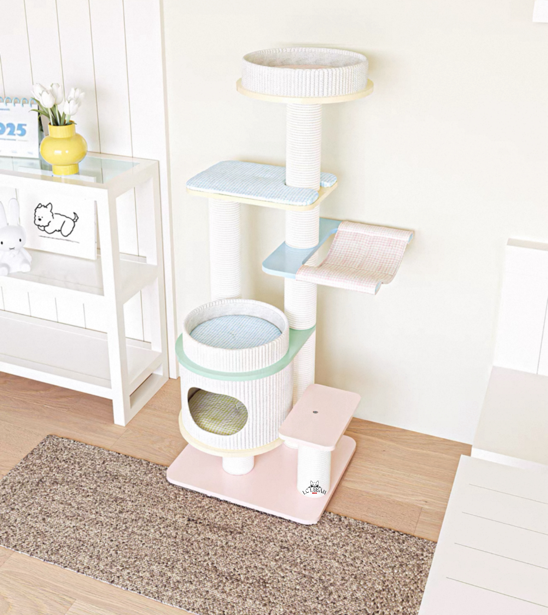 ➵ 馬卡龍色系多層貓爬架𓃠 ➵ 漆面防水防潮防變形 ➵ 雙面A++級板材 多層實木板 ➵ 全棉水洗棉 親膚透氣特性吸濕性好 ❥