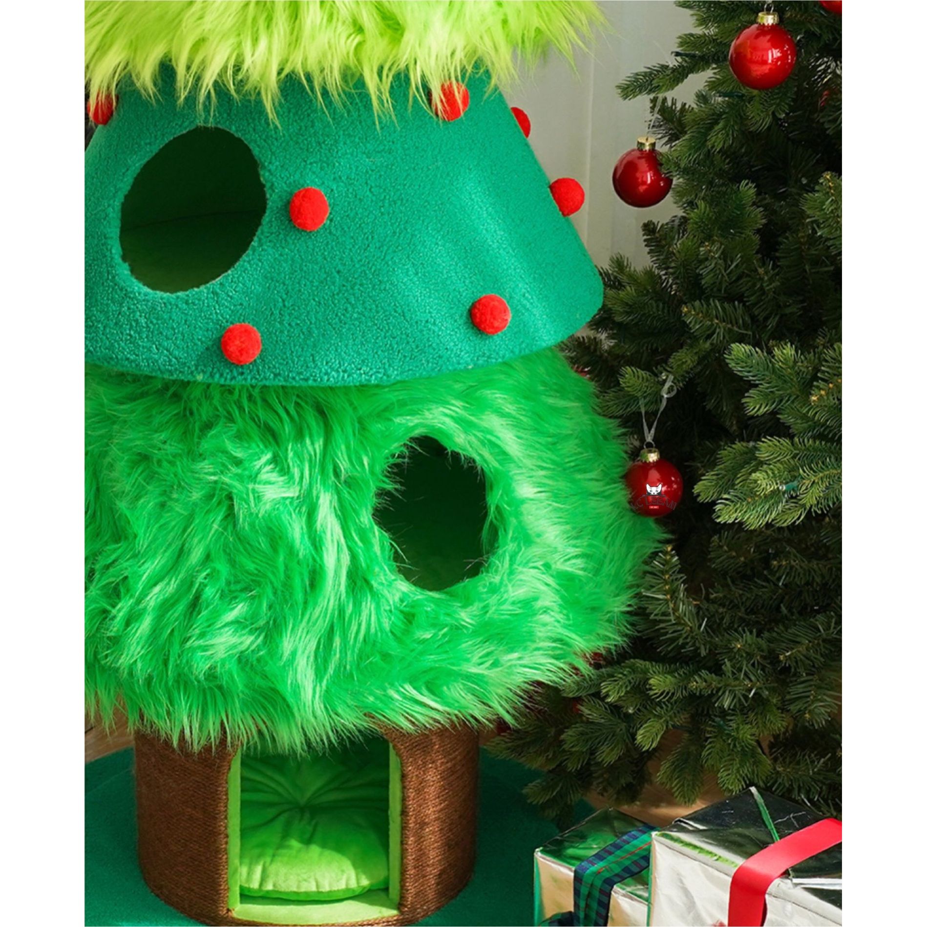 ➵ 🎄超級聖誕樹爬架𓃠 ➵加密的長長的絨毛 細膩柔軟 ⋆爬架頂層特設軟糯的長絨毛 ⋆表面毛絨絨 觸感舒適 御寒保暖 ➵黃金結構 穩如泰山 ⋆採用科學的三角結構 牢牢支撐 ⋆穩固耐用 貓貓肆意穿梭不搖晃 ➵ 絨絨圓滑的洞口設計 ⋆每層洞口邊邊都用絨布包裹 ⋆貓貓靠靠貼貼 享受恬靜的休憩時光 ➵加厚加高的雙層底座 ⋆上下兩層一大一小的高密度板材 ⋆牢牢疊加固定 提高承載力和穩定性 ➵耐磨耐抓的麻繩樹干 ⋆圓柱狀的樹干外層層麻繩纏繞 ⋆內部柔軟寬敞的小窩 可放鬆休憩 ❥ 尺寸: 67x67x127cm