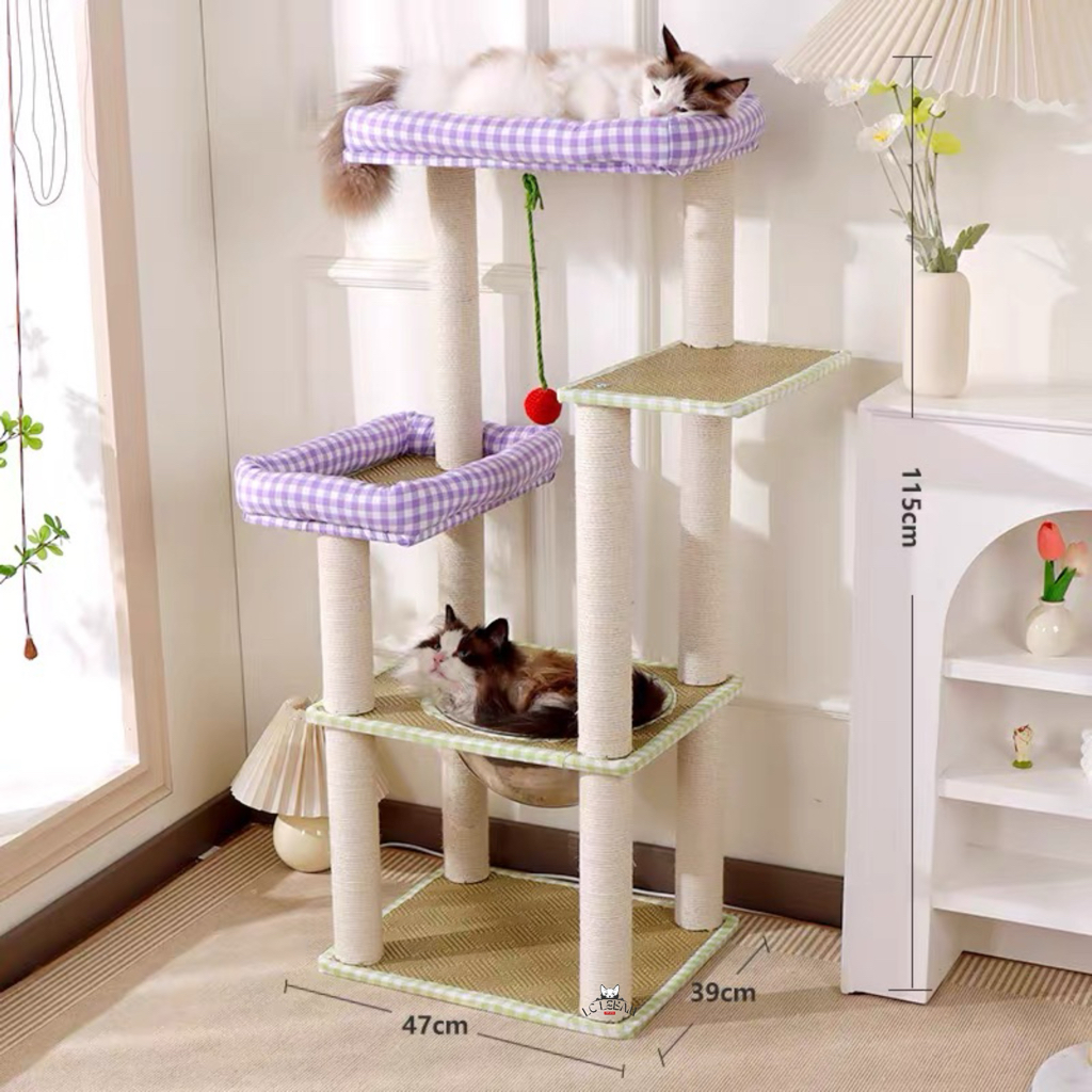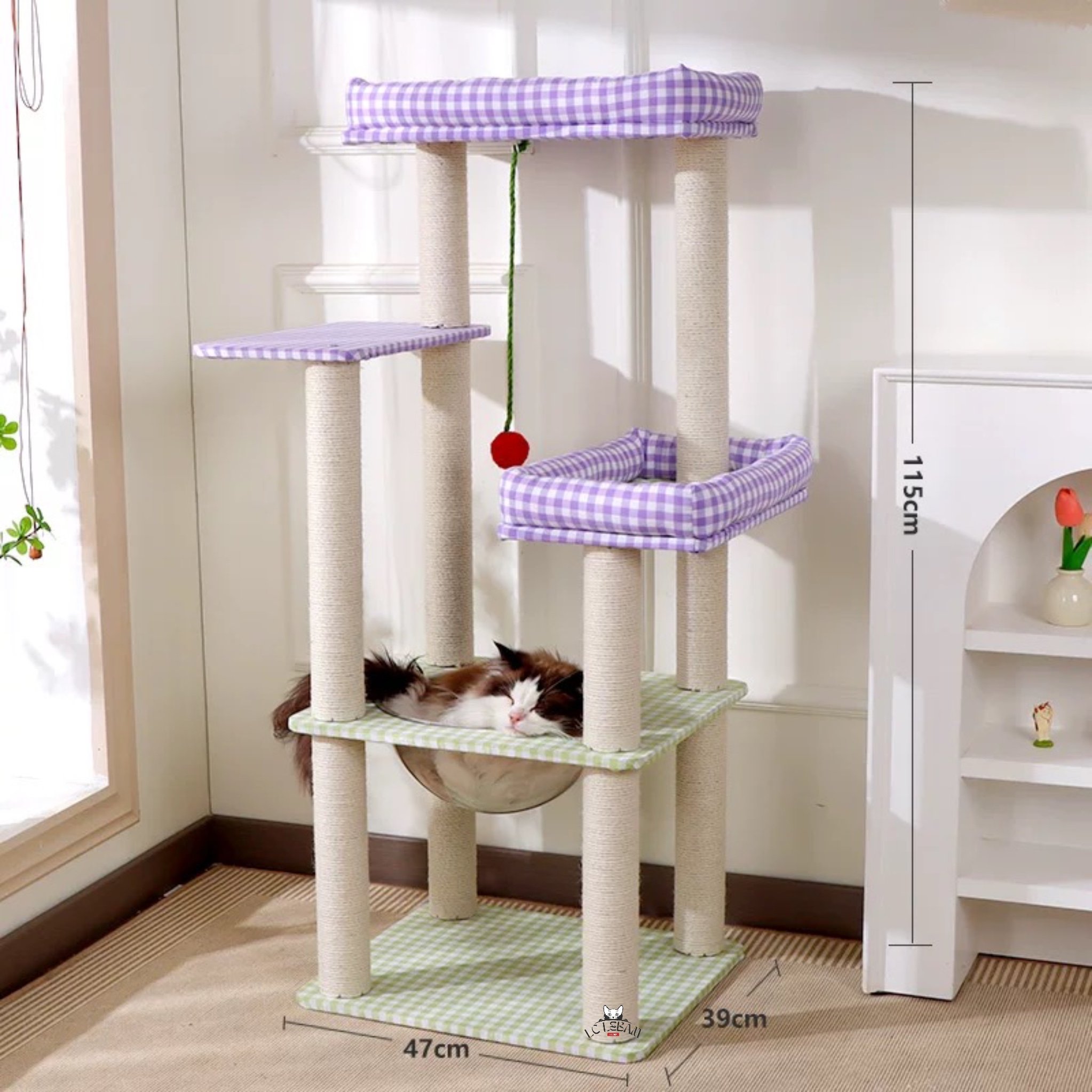 ➵ 奇幻趣味多層貓爬架𓃠 ➵ 親膚平紋格仔布 ➵ 跳台合理地分布 ➵ 凹形流體設計 經典太空艙 ➵ 升級加粗劍麻柱 自由跳躍 ❥
