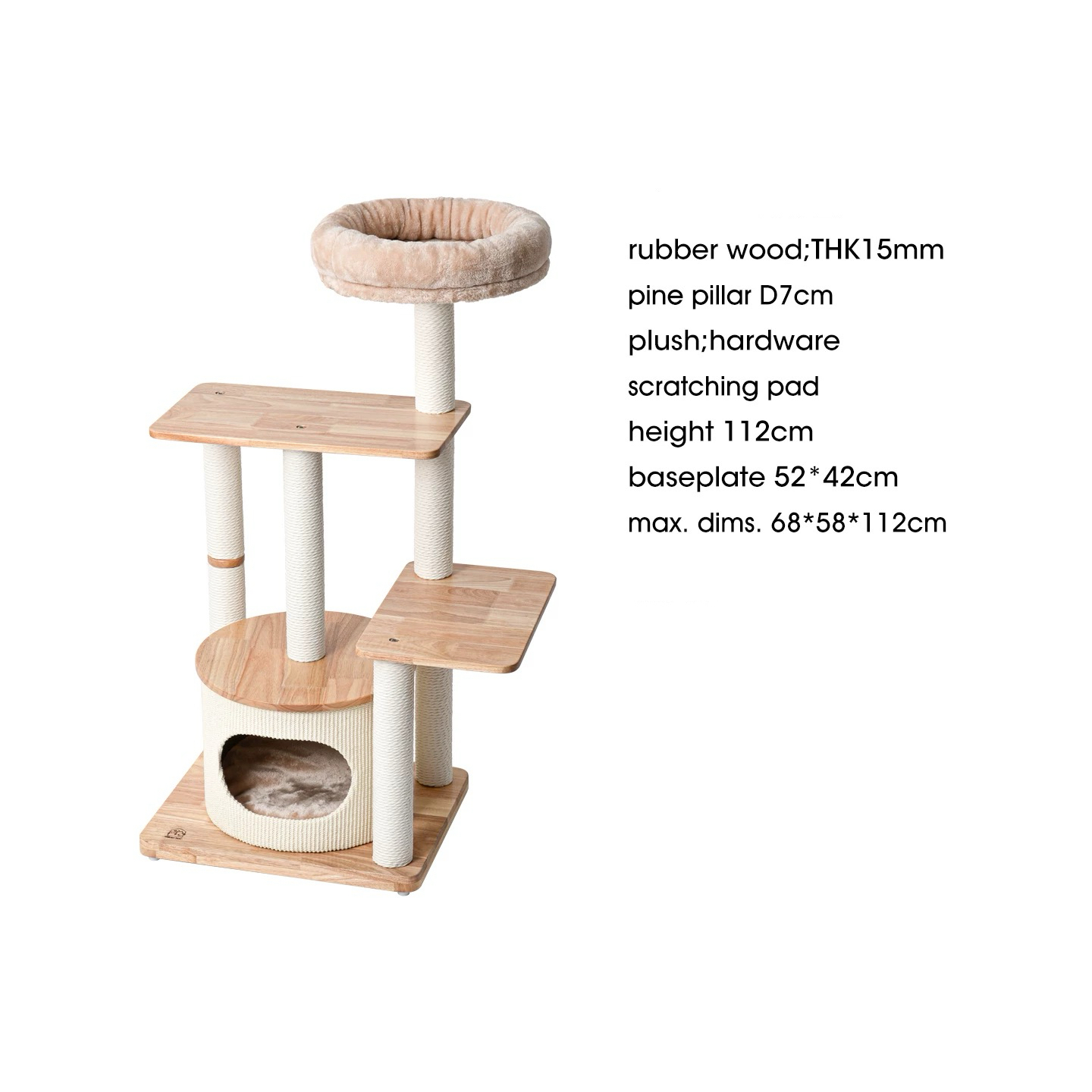 ➵ 實木小型貓窩貓爬架𓃠 ➵ A級原木進口南橡木 ➵ 立柱直徑7cm實木柱 ➵ 可選噴木器漆 防水濕布可擦 ❥ 尺寸:68x58x112CM
