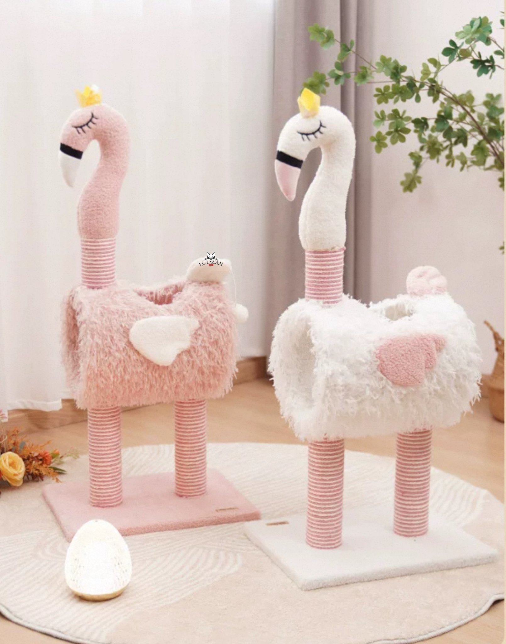 ➵ 粉嫩火烈鳥貓窩貓抓柱𓃠 ➵ 三段劍麻抓柱 ➵ 中段貓洞貓窩可睡 ➵ 加厚穩固底盤 穩定不晃 ➵ 精選高仿真羽毛 細膩柔軟 ❥